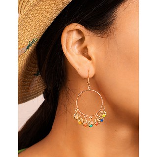 1 Pasang Anting Rumbai Gantung Bentuk Bulat Warna Kontras Anti Alergi Untuk Wanita