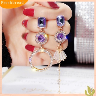 Fresh| Anting Tusuk Gantung Panjang Asimetris Desain Geometri Hias Berlian Imitasi Untuk Wanita