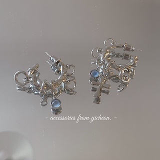 YEEZII Anting Tusuk Gantung Silver Desain Pitabintang Hias Kristal Gaya Elegan Untuk Wanita