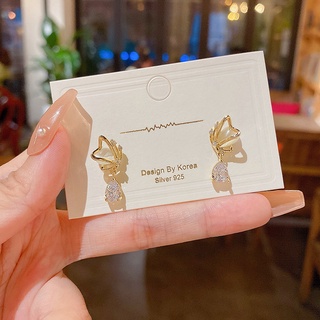 Anting Tusuk Gantung Desain Kupukupu Hias Kristal Zirconiarumbai Warna Gold Gaya Korea Untuk Wanita