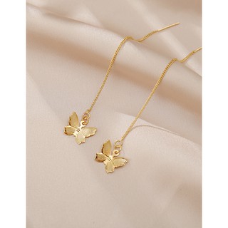 LRC Anting Gantung Fashion Golden Butterfly Wing Gold-plated Earrings Y63062
