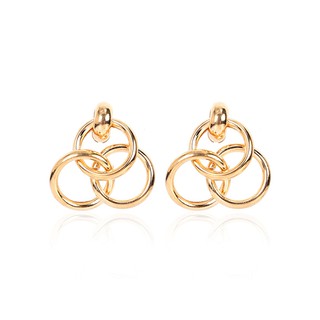 LRC Anting Tusuk Fashion Gold Color Round Shape Decorated Earrings F04952