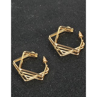 LRC Anting Tusuk Fashion Gold Color Alloy Irregular Square Multilayer P48332