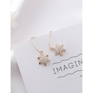LRC Anting Tusuk Fashion Gold Color Snowflake Shape Decorated Earrings F04950