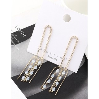 LRC Anting Tusuk Fashion Golden Real Gold-plated Fringed Careful Crystal Glass S925 Silver Pin Earri
