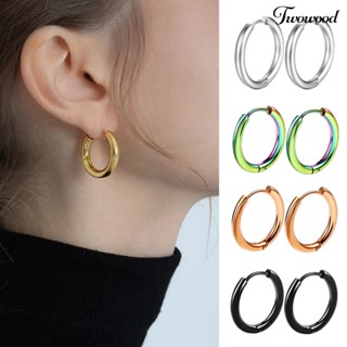 Twowood 1pasang Anting Hoop Stainless Steel Geometris Elegan Dipoles Warna Perak Anting Lingkaran Logam Fashion Perhiasan