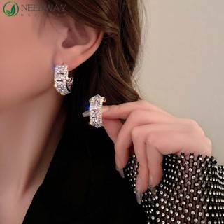 Needway Anting Hoop Perempuan Temperamen Pernikahan Sederhana Perhiasan Fashion Mewah Gaya Korea Anting Wanita Ear Drop