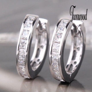 Anting Hoop Bentuk Bulat Persegi Kecil Lapis Perak Aksen Berlian Imitasi Untuk Pria