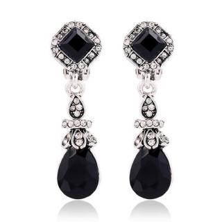 Anting Klip Tanpa Tindik Gaya Vintage Bohemia Bentuk Geometri Bahan Resin Warna Hitammerah Untuk Wanita