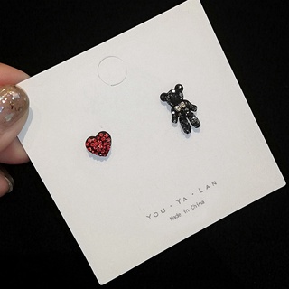 925 jarum perak asimetris bear love heart stud anting-anting wanita temperamen Korea kepribadian kar
