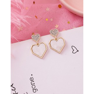 Anting Gantung Emas Putih Zircon Love Heart Kadar 75% 2.7 Gram