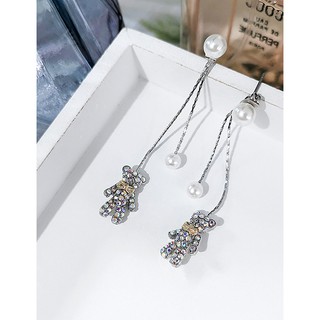 LRC Anting Tusuk Fashion Long Silver Bear Pearl Stud Earrings F76517