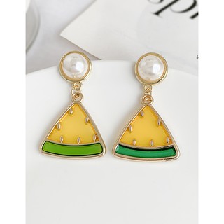 LRC Anting Tusuk Fashion Yellow Alloy Resin Pearl Watermelon Earrings D93603