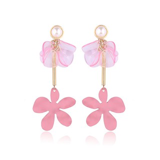 LRC Anting Tusuk Fashion Pink Flannel Pearl Love Flower Earrings D22781