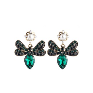 LRC Anting Tusuk Fashion Butterfly Alloy Multi-layer Rhinestone Pearl Earrings D94355