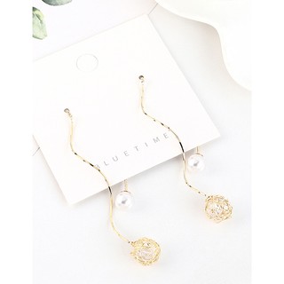 LRC Anting tusuk Fashion Golden Gold-plated Pearl Ball Cutout Long Earrings