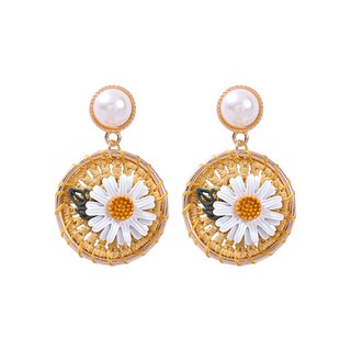 LRC Anting Tusuk Fashion Gold Alloy Pearl Rope Braided Flower Earrings F99642