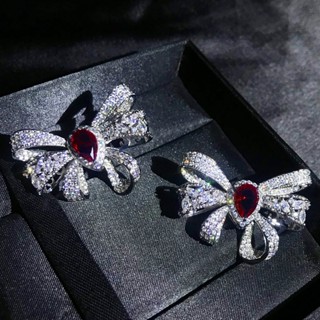 Goldkingdom Fashion Perhiasan Aksesoris Ready Stock Xiaoxiangfeng Desain Tiga Dimensi Penuh Bor Super Peri Busur Perempuan Ins Graf Warna Berlian Merah Harta Karun Kupu-Kupu Anting