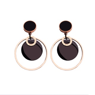 Anting bulat hitam angka romawi titanium anti karat korea fashion