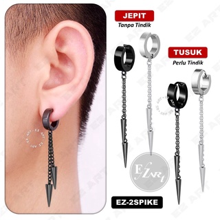 1Pc EZ-2SPIKE ANTING DOUBLE SPIKE RANTAI PANJANG GANDA SILVER HITAM JEPIT TUSUK PRIA WANITA KPOP BTS