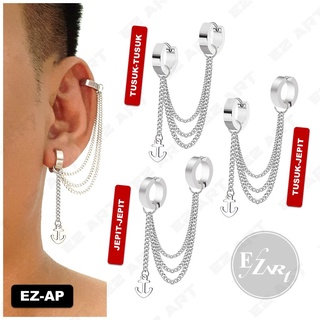 1Pc Model EZ-AP Triple Rantai Silver Anting Pria Cowok - Wanita Cewek Jepit Tusuk KPOP Punk Jangkar