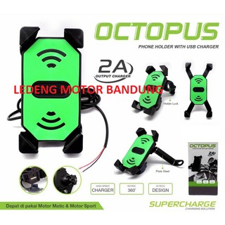 Holder HP Octopus 2in1 Chager USB 2a Stang Spion Motor Universal Bebek Matic Sport