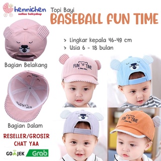Topi Baseball bayi Fun Time bear motif lucu bordir baby cap import