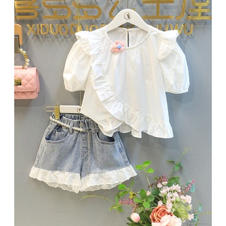 babyfit [3-8thn] MARGHA baju setelan celana jeans pendek anak perempuan blus square neck import al-1025r