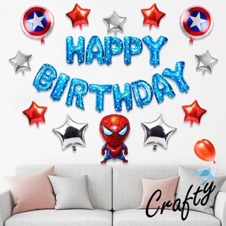[PAKET] Kids BIRTHDAY Set SPIDERMAN BLUE Tiruan Dekorasi Backdrop Ulangtahun Anak