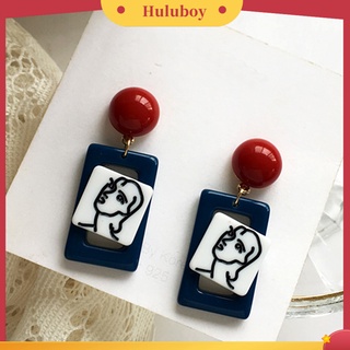 Hu Hu Hu Hu Hu Alat Bantu Pasang Kacamata♡ 1 Pasang Anting Stud Desain Figur Abstrak Bahan Resin Gaya Vintage