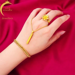 Set Perhiasan Cincin Gelang Kalung Emas Plated 24K Bentuk Bunga Teratai Dapat Disesuaikan Untuk Wanita