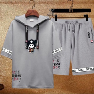 N_S Stelan Pria/Wanita 1Set Distro Baju Hoodie+Celana Pendek MI BOY-V2