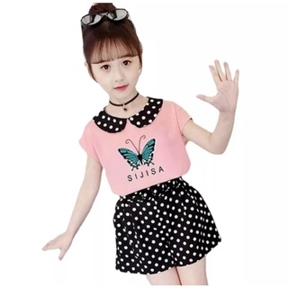 INV - KIDS SETELAN BUTTERFLY / POLKA SKIRT / PINK / PUTIH / TERBARU / 3-5 THN