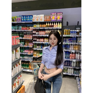 Kemeja wanita versi Korea semua pertandingan mode pendek hot girl top musim gugur kasual warna solid niche tren kemeja ramping ramping