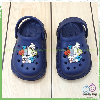 Sendal Anak Laki Laki Usia 1 2 Tahunan NAVY Karet Anti Licin - Sendal Anak Cowok Unisex Model Tali Belakang Motif Kartun Lucu Bahan Karet Anti Licin Size 19-21