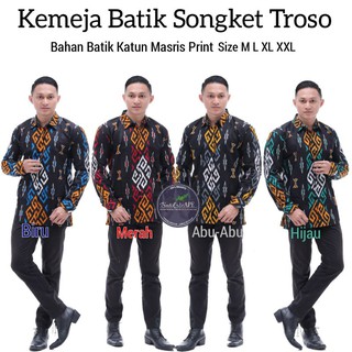 HEM KEMEJA SONGKET TROSO BATIK KATUN MASRIS PRINT MOTIF EXCLUSIVE BAHAN BAGUS TEBAL XXL LD 120CM