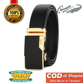 TOKOKOE - Gesper Ikat Pinggang Pria model Rel Ban Pinggang Otomatis Bahan Kulit Jumbo Size - Croc CR44 Black
