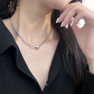 Kalung Liontin Bola Bahan Baja Warna Silver Gaya Retro Punk Untuk Wanita