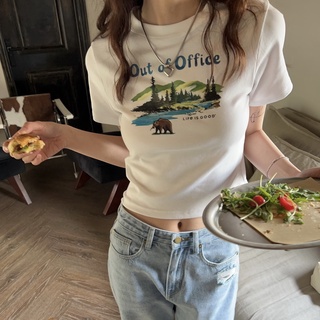 Lengan pendek t-shirt wanita musim panas Perancis manis dan pedas desain rasa niche chic cetak Jepan