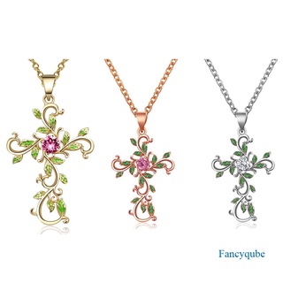 Kalung Desain Salib Bunga Dan Daun Aksen Kristal Bahan Cubic Zirconia Gaya Klasik Untuk Wanita