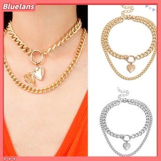 Kalung Rantai Choker Double Layer Liontin Hati Bahan Alloy Tebal Untuk Tanggal