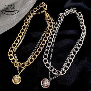 Kalung Rantai Double Layer Dengan Liontin Bahan Titanium Steel Gaya Hip Hop ANTOP