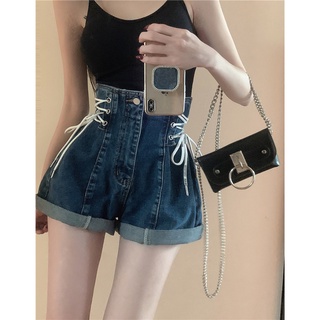 Gaya Korea Jeans Hot Girl Rolled Edge Perban Celana Pendek Denim Wanita Musim Panas 2022 Baru Warna