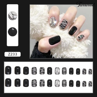 Twowood 24Pcs / Kotak Kuku Palsu Bahan ABS Warna Hitam / Silver Untuk Nail Art