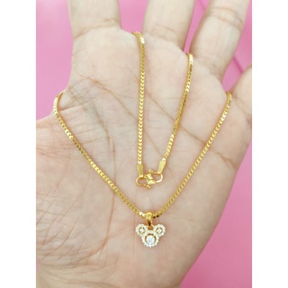 KALUNG ANAK MILANO KACA + LIONTIN MICKY PERAK 925 LAPIS EMAS 24K