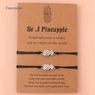 Fancyqube 2pcs / Set Gelang Desain Nanas Bahan Stainless Steel Warna Rose Gold Untuk Pria Dan Wanita