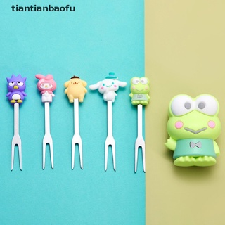 5pcs / Set Garpu Buah Dessert Bahan Stainless Steel Desain Kartun Dengan Holder
