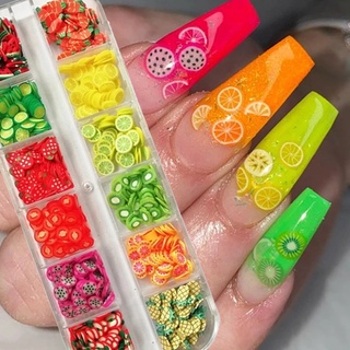 12 Grid Stiker Kuku 3D Bahan Plastik Desain Bunga Buah Untuk Dekorasi Manicure