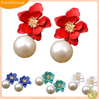 Fresh| Anting Tusuk Gantung Wanita Bahan Resin Desain Bunga Hias Mutiara Imitasi Untuk Musim Panas / Hadiah