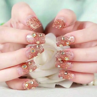 Kuku palsu 3D/Glitter Solid False Nails Orange Pink Heart Rhinestone